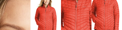 Designed with baffles contoured to fit your body, this streamlined jacket offers lightweight, highly compressible ThermoBall ® powered by PrimaLoft ® synthetic insulation. 15D 33 g/m2 100% nylon with DWR finish 11.5 g/ft2 PrimaLoft ® ThermoBall ® synthetic insulation Stows in left hand pocket Contrast embroidered The North Face logo on left chest and right back shoulder Hem cinch-cord BENEFITS DURABLE WATER-REPELLENT: DWR is applied to the face of the fabric to provide the first line of defense against wet weather. INSULATED: Insulation traps hot air for reduced heat loss and increased warmth. PACKABLE/STOWABLE: Highly compressible layer for emergency use or travel. SYNTHETIC: Designed to replicate the qualities of down, but retain them even when wet. **